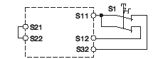 如果是雙通道不檢測(cè)觸點(diǎn)間短路故障工作方式的話則是短接S21和S22,兩個(gè)常閉觸點(diǎn)分別置于S11和S12,S11和S32之間。
